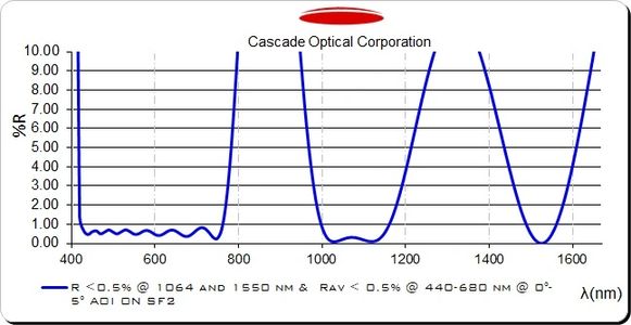 For Military applications we have been asked to push the limits of the traditional visible BBAR and incorporate low reflection at both, common NIR wavlengths, 1064nm and 1550nm