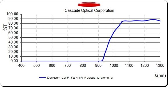 Please pay attention to the round object located on the front left hand side of the tank. The IR Radiation, goes right through the green paint and lights up the battlefield for NIR cameras. Below, you will find the specifications and spectral graph of a typical Covert Long Wave Pass